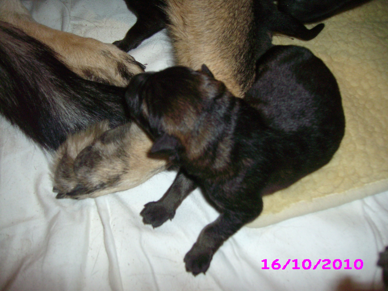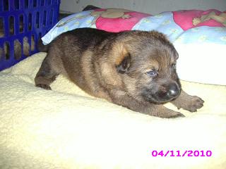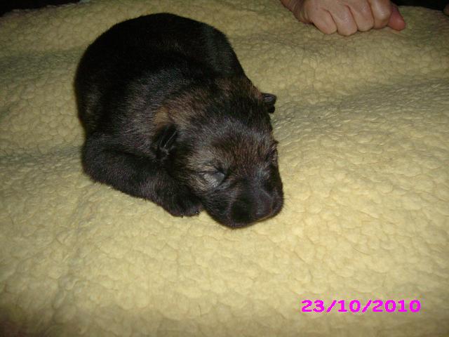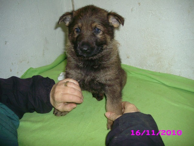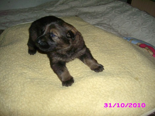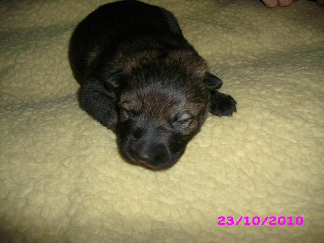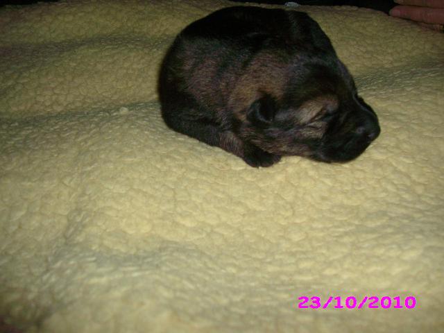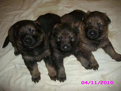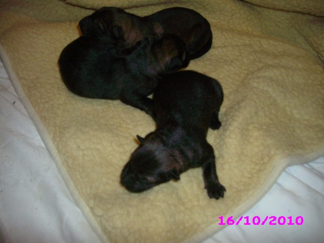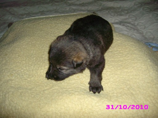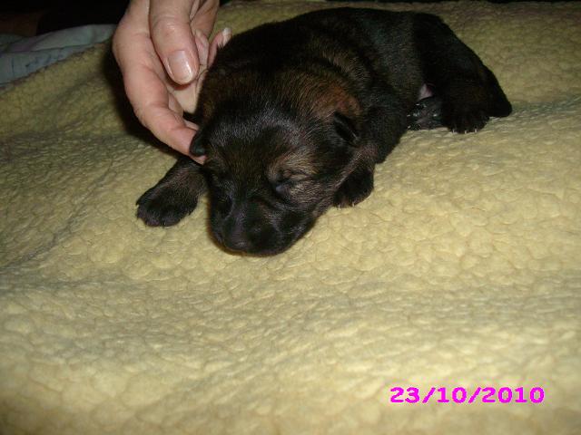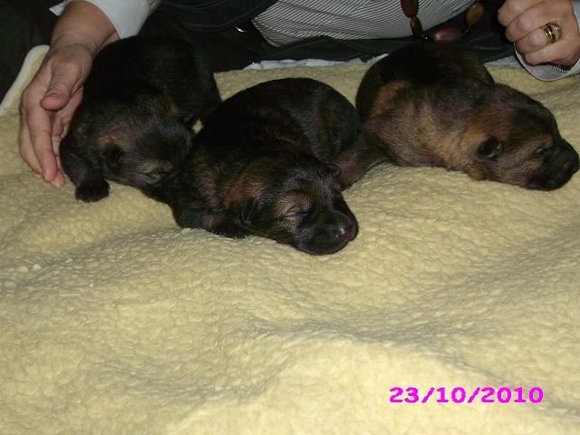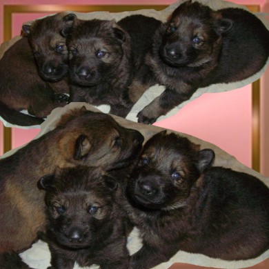 Hündin.Es sind immer 3 Bilder von jedem Welpen immer untereinander.