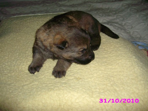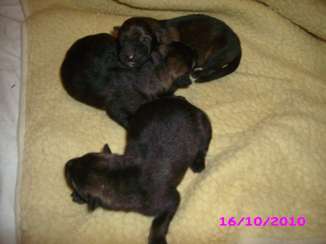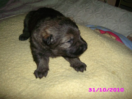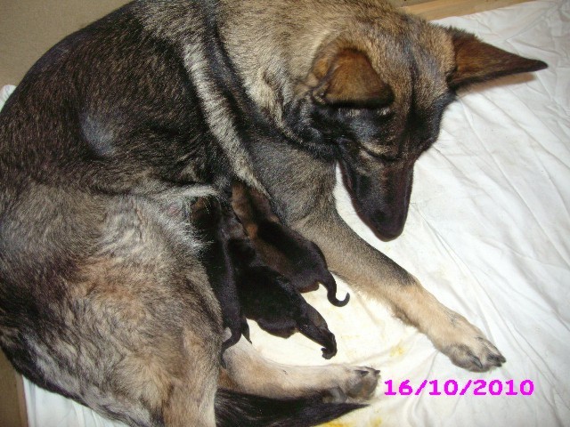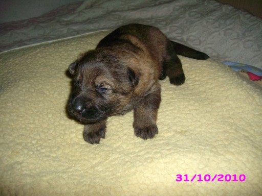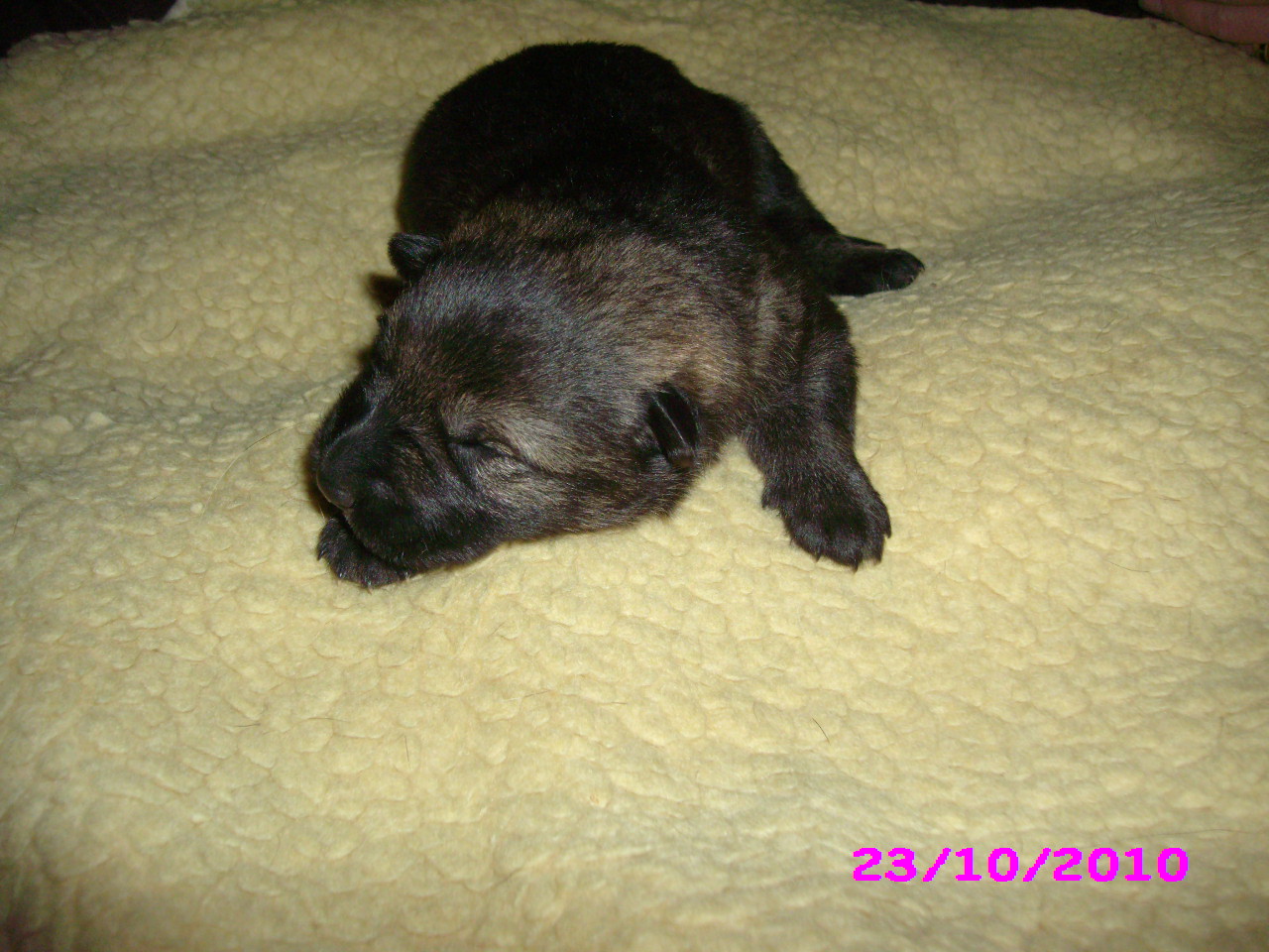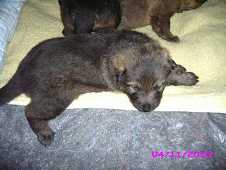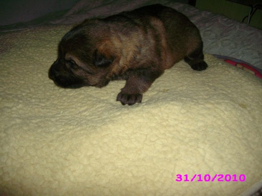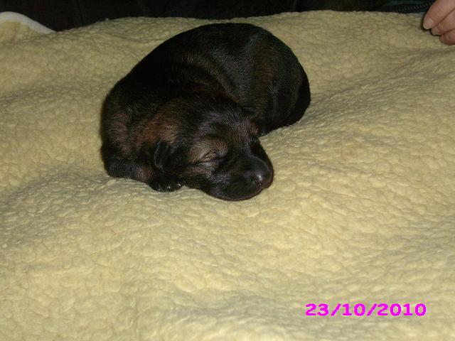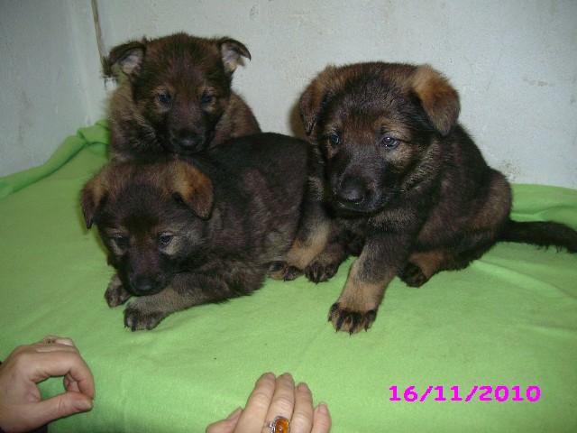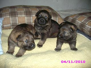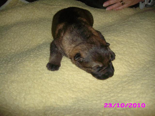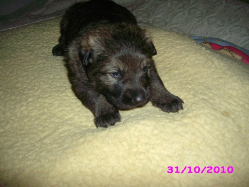 Hündin.Es sind immer 3 Bilder von jedem Welpen immer untereinander.