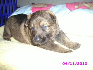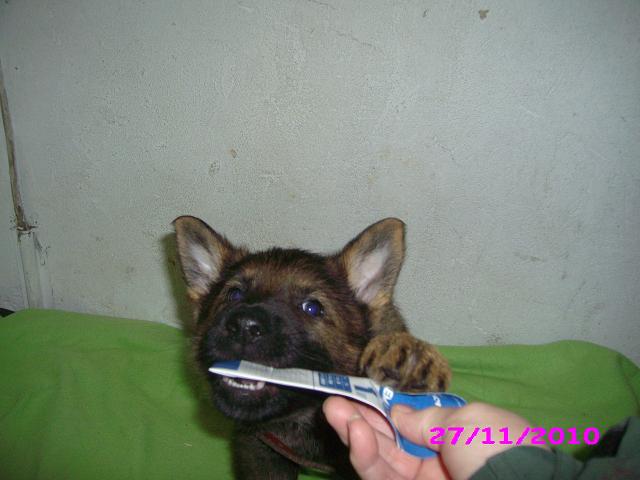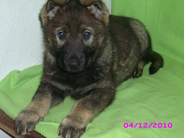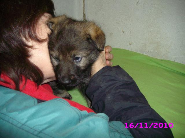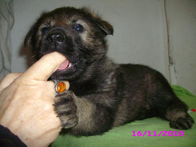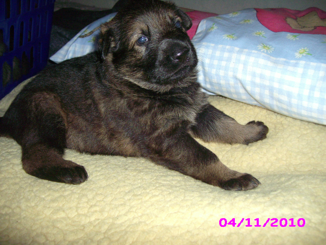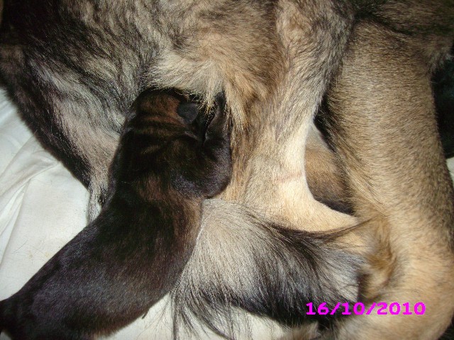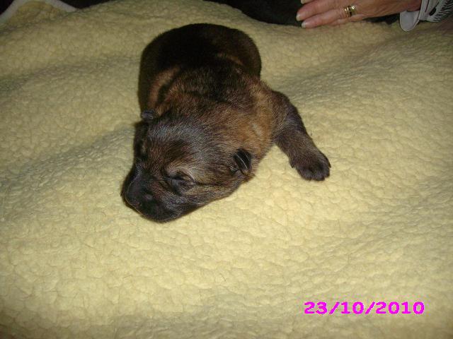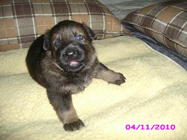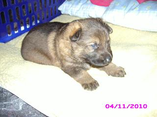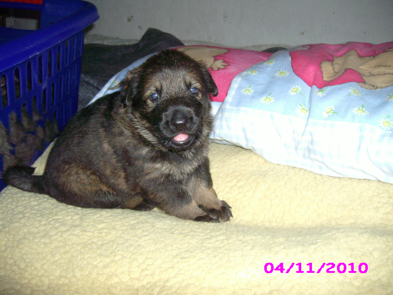 Hündin.Es sind immer 3 Bilder von jedem Welpen immer untereinander.